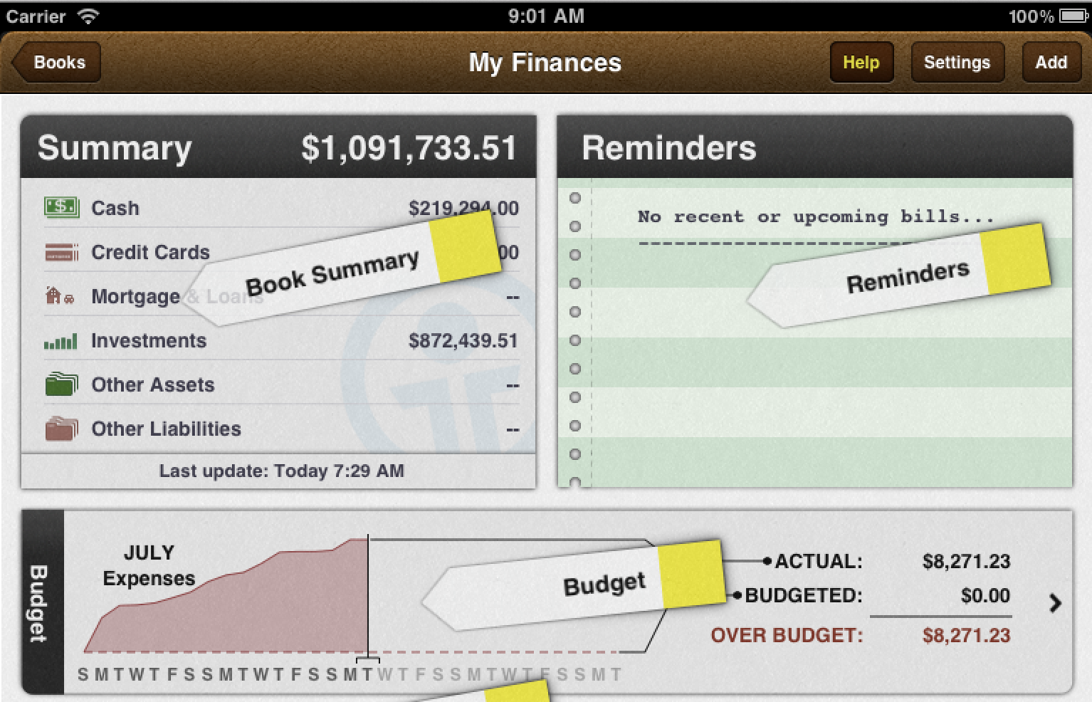 I don’t demand that the two versions be exact matches in features, but I need to understand the differences. iBank Mobile on my iPhone is not feature identical but I understand its limitations and how to use the two together. I don’t have that understanding on the iPad version. Features have names such as Budget and Scheduled Transaction on both versions, but they apparently mean different things and I have no access to documentation to understand the differences.