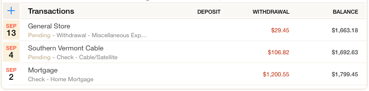 In the screenshot above, can you guess which element to tap to add a something? Right, the blue + sign. Can you guess what it adds? That’s right, a transaction. How did you know this? Because the + is right next to the list of transactions — we call this functionality by proximity. I know this isn’t a major feature, but nonetheless it’s some nice refinement.